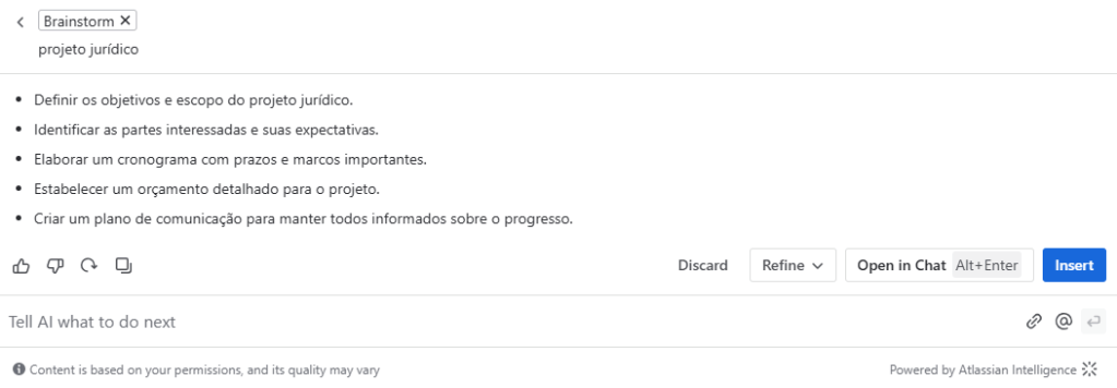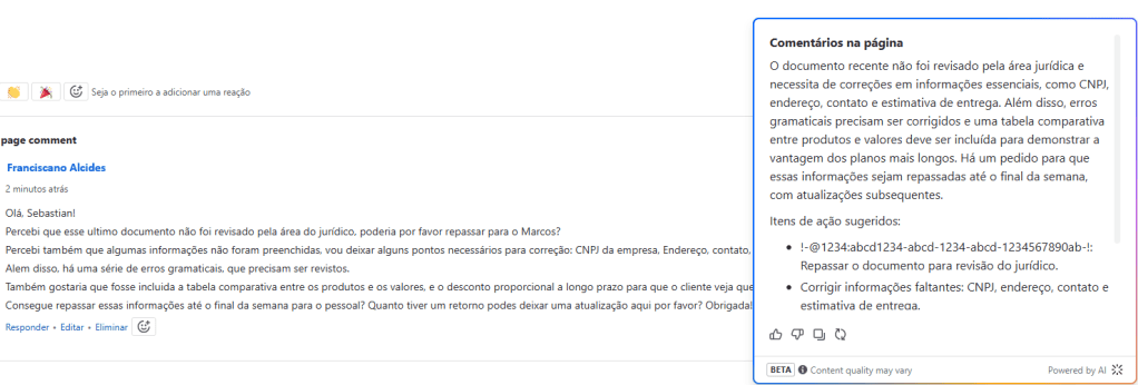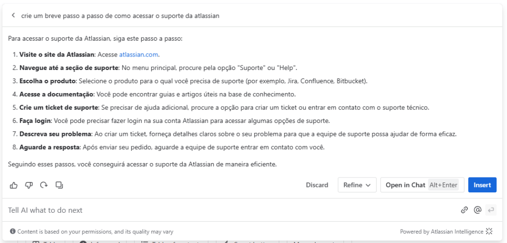 💡 Se sua equipe ainda não explora essas funcionalidades, esse é o momento ideal para começar. A IA no Confluence pode se tornar sua maior aliada na construção de uma base de conhecimento rica, bem escrita e fácil de manter.